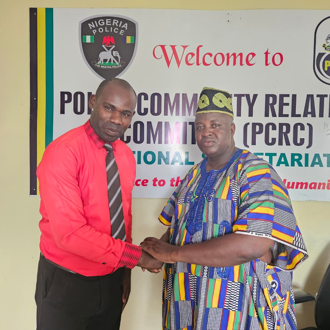 Today in Abuja (FCT), the National Chairman of the Police Community Relations Committee (PCRC), Alhaji Mogaji Ibrahim Olaniyan, warmly received Comrade Bibi Oduku, Chairman of Guard Time Information, Human Rights Activists Nationwide, for a strategic collaboration meeting focused on advancing human rights and community development.