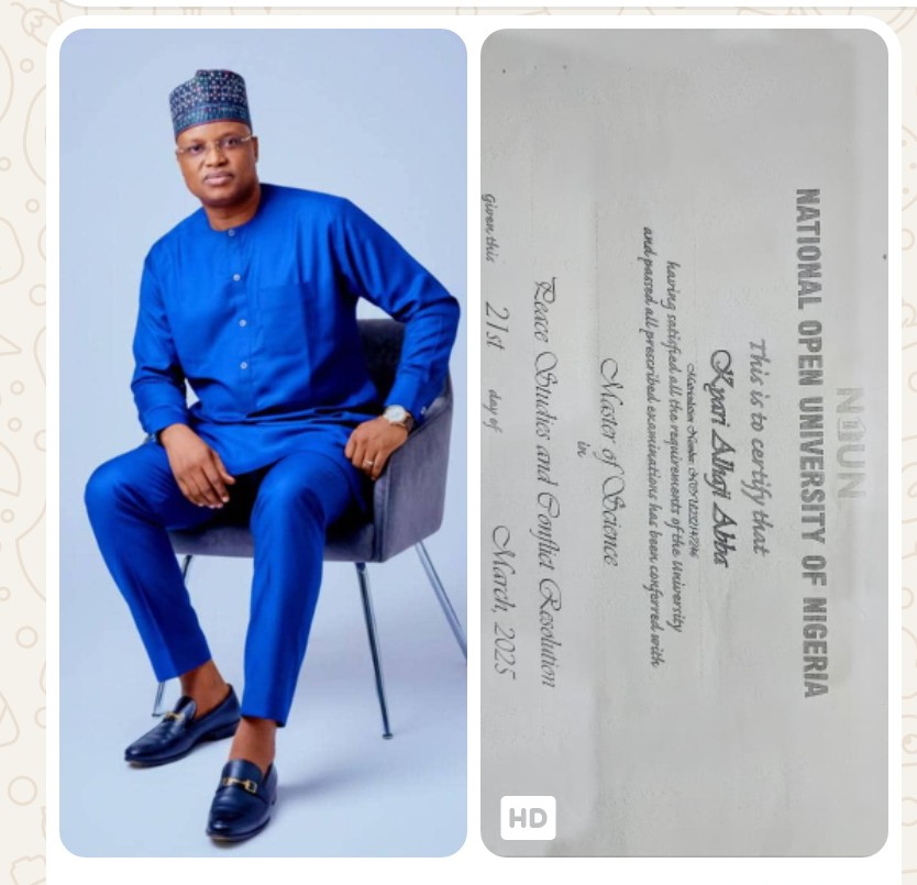 Kyari was formally awarded the degree on Monday, according to a copy of the certificate shared with The Whistler by a family member, Abdul Hadi Ibrahim. The certificate confirms that he completed the postgraduate programme at the Nigerian Open University (NOUN) Kuje Correctional Centre Campus, which offers a special study arrangement enabling inmates to pursue education as part of their rehabilitation.