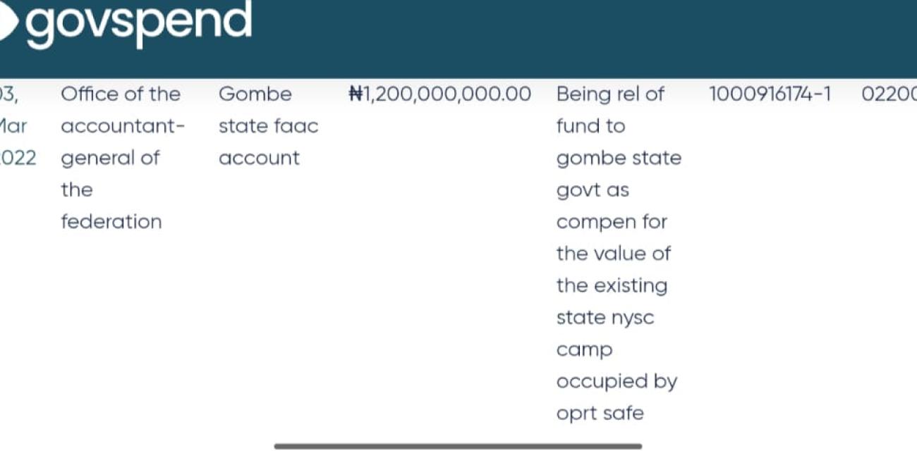 Official payment records show that the N1,200,000,000 was released on March 3, 2022, through the Office of the Accountant-General of the Federation, and paid directly into the Gombe State FAAC account.