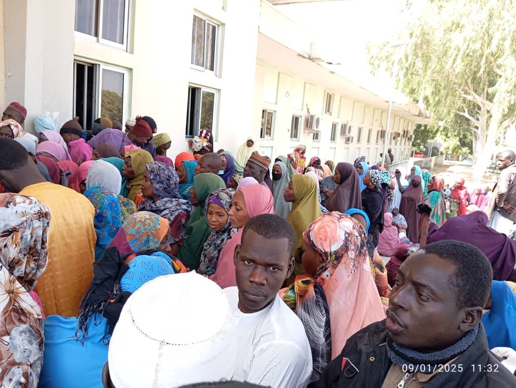 MAMMOTH crowd besieged the popular Maiduguri Eye Hospital located along Damboa road within the Metropolis jostling to acquire the mega free Eye treatment and surgery cases related to cataract among other related illnesses.