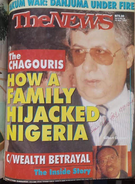 Now, take a look at the from page of this November 1997 edition; The CHAGOURY’S. HOW A FAMILY HIJACKED NIGERIA.