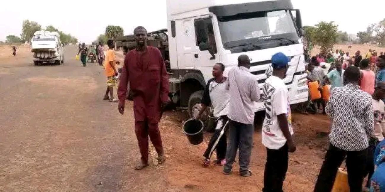 Videos and photos circulating online showed people clustering dangerously close to the overturned tanker, ignoring the possibility that even the smallest spark could trigger a devastating fire outbreak.
